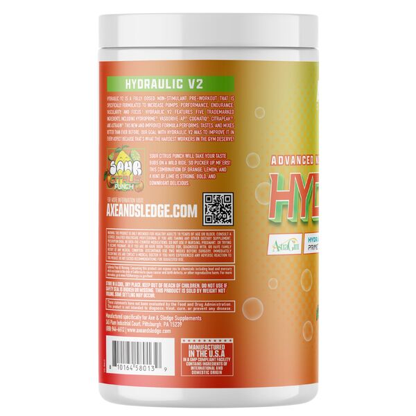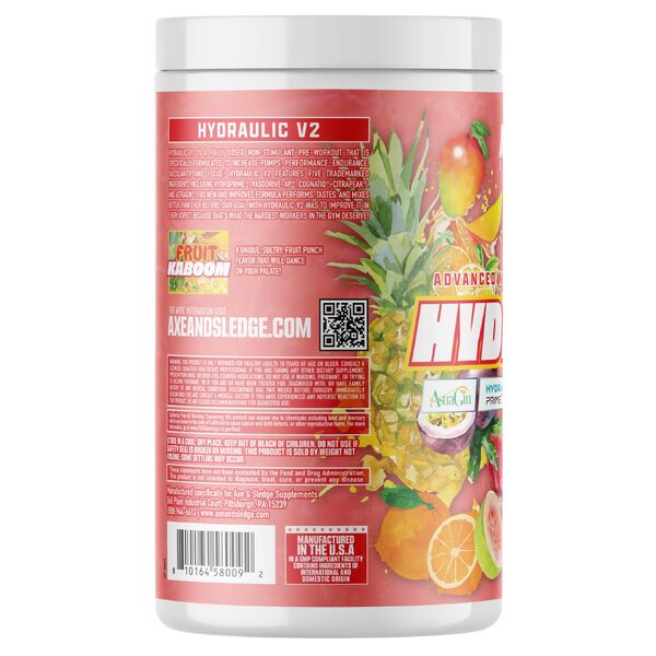 Axe & Sledge Supplements Hydraulic V2 Non-Stim Pre Workout is a stimulant-free training formula designed for customers who want strong pumps, hydration and focus without caffeine. It is a practical option for late training sessions, for stacking with stimulant products, or for customers who prefer to avoid stimulants altogether.