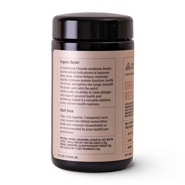 Evolution Botanicals Organic Reishi 90g Powder is a certified organic mushroom extract made from 100% fruiting bodies. It is commonly chosen by customers looking for a daily mushroom powder to support relaxation, sleep quality, immune health and everyday well-being.