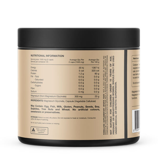 Consume 1 Serve of Magnesium Glycinate daily or before bed or as recommended by your health care provider. Magnesium Glycinate is a sour tasting compound, so it is encapsulated to avoid taste.