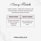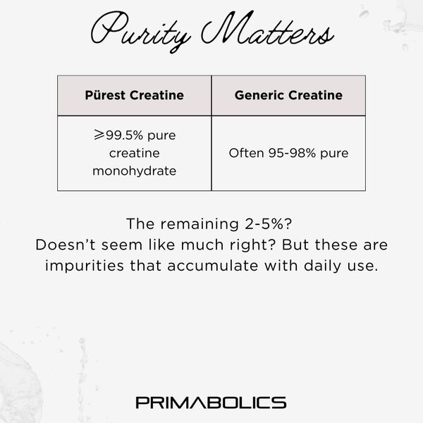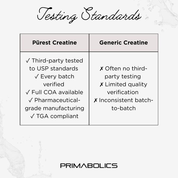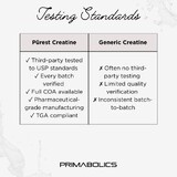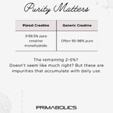 Primabolics positions Purest Creatine is a premium purity-first creatine formula for athletes, lifters and high-performance individuals who want a cleaner monohydrate option. The brand highlights tight impurity limits, third-party testing and strong quality control as key points of difference.