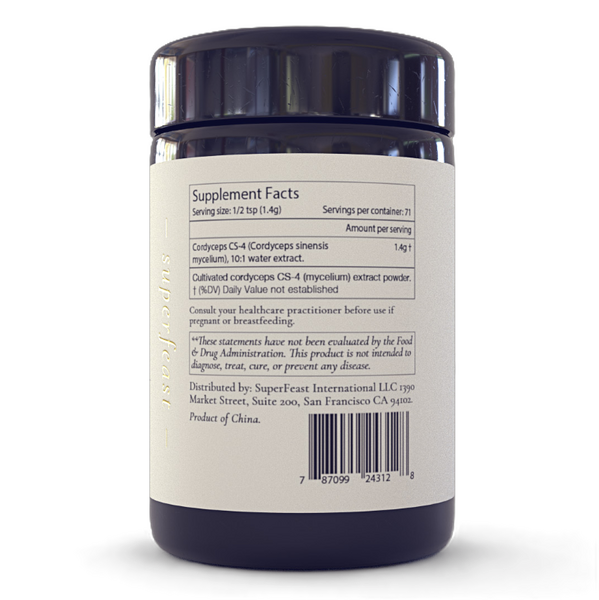 Our traditionally sourced 10:1 Cordyceps extract is made from vegan-grown Cs-4 mycelium, cultivated through liquid fermentation in its native homeland. This fillerless process results in an ethically harvested, 10:1 potency cordyceps extract powder.