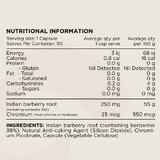 Berberine 97% (Berberis aristata root), Silicon Dioxide, Chromium Picolinate, Capsule (Vegetable Cellulose). Active ingredients per capsule: Berberine 250mg and Chromium 50mcg.