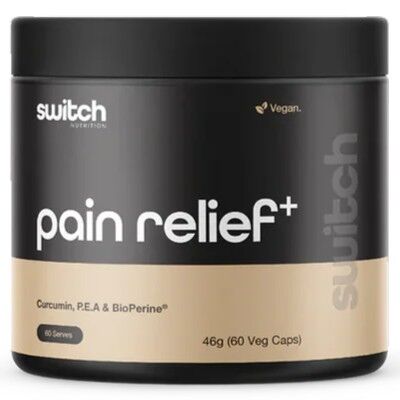 Switch Nutrition Pain Relief+ is a specialised herbal and nutritional formula designed to support joint comfort, mobility and recovery. This version reflects the original label using curcumin, palmitoylethanolamide (PEA) and BioPerine in a convenient capsule format.