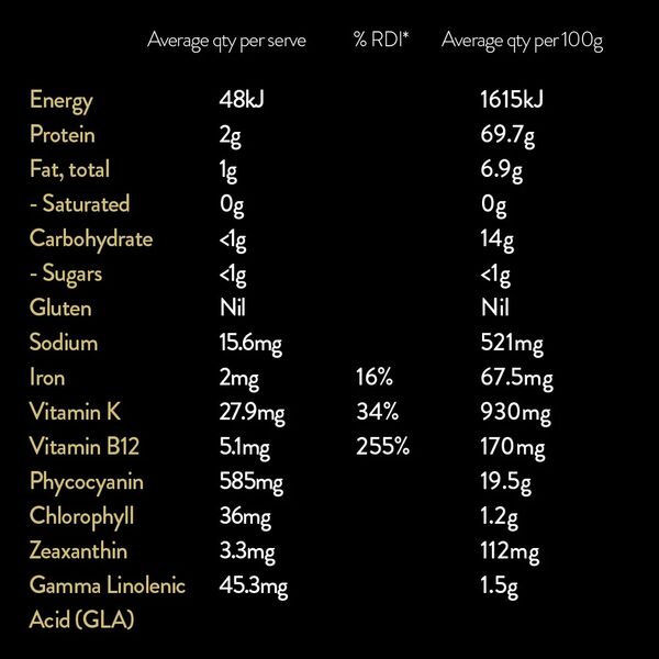 Spirulina is valued for its protein content and its naturally occurring vitamins, minerals, essential fatty acids and antioxidants.