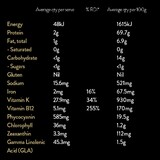 Spirulina (Arthrospira platensis) Powder (98%), Silicon Dioxide, Fatty Acid (vegetable source)