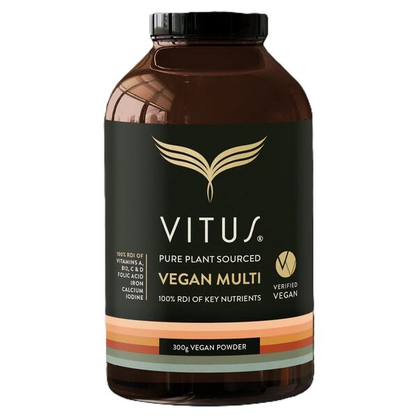 Vitus Vegan Multi is a wholefood vegan multivitamin powder with 22 essential vitamins and minerals and no synthetic vitamins.
