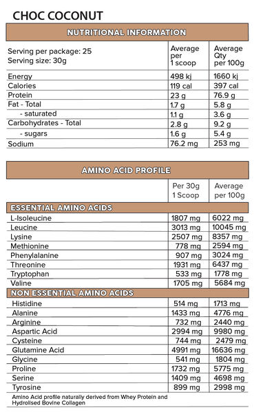 The product is 20% trademarked and grass-fed bovine collagen, as well as for another important reason. This product has been made to meet all of our protein requirements as athletes. In the modern diet, where we no longer eat nose to tail on animal products and just eat muscle meats, our diet is very low in collagen. Collagen is a structural protein that is designed to aid in the synthesis of tendons, ligaments and fascia.